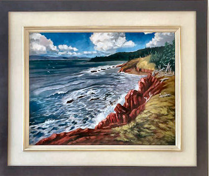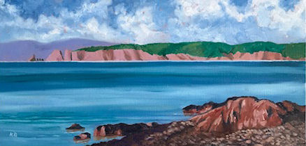 Red sandstone cliffs typical of the bay shores